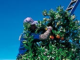 まるまる太ったネーブルオレンジを手作業で収穫。